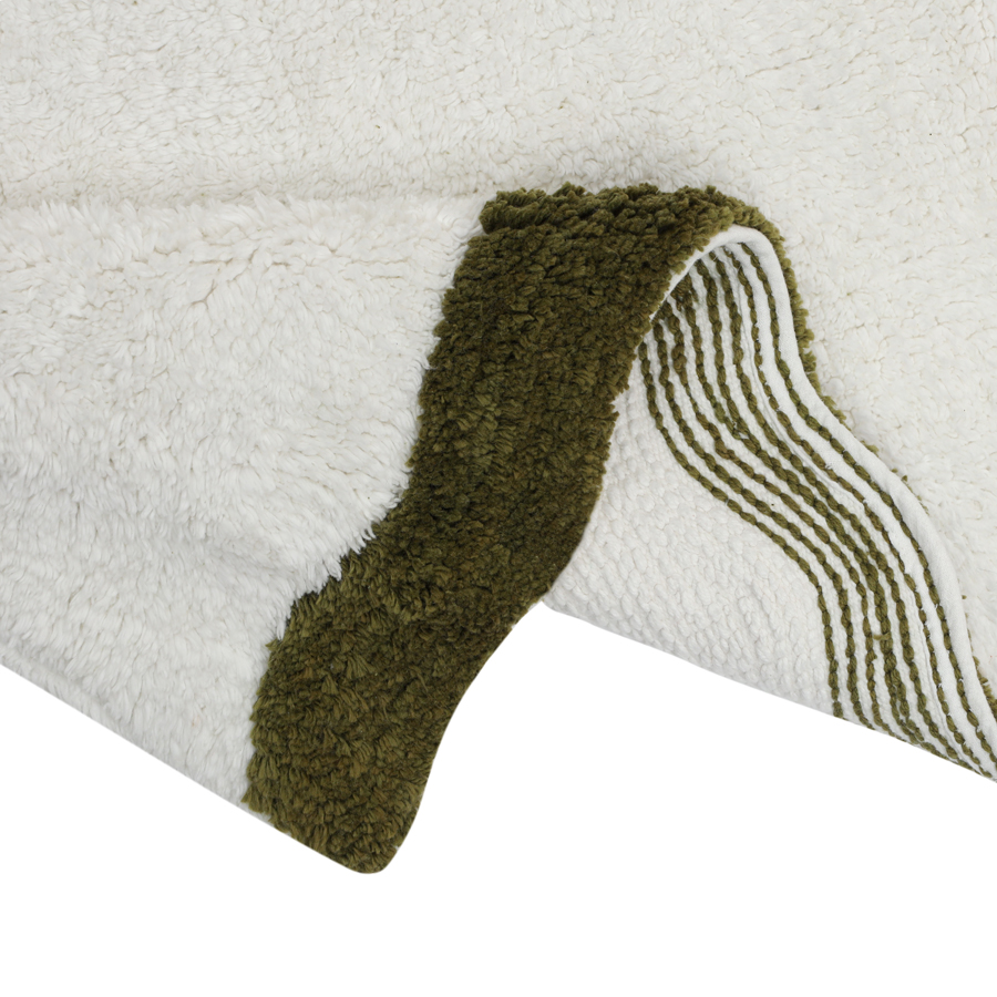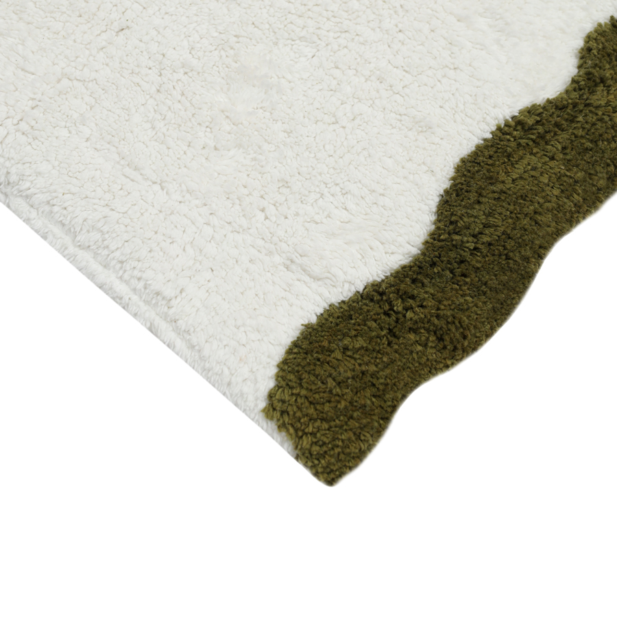 "Коврик для ванной с кантом оливкового цвета из коллекции Trendy Ruffles понравится ценителям натуральных материалов и трендового дизайна. Текстиль с волнистой отделкой, напоминающей изящные раковины морских гребешков, стал ярким элементом стиля Ар Деко – и сейчас возвращается в моду, появляясь в самых актуальных интерьерных решениях.
