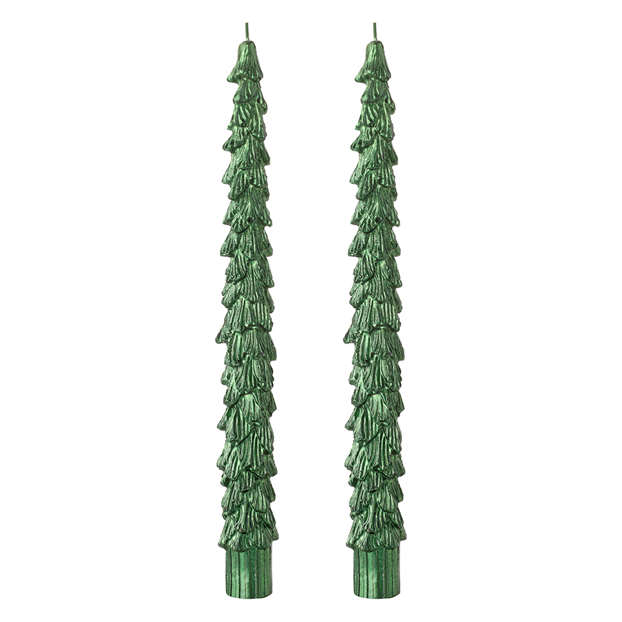 "Набор из двух свечей из коллекции New Year Essential создаст волшебную атмосферу праздника. Высокие зеленые елочки идеально подходят для украшения праздничного стола, камина или подоконника.