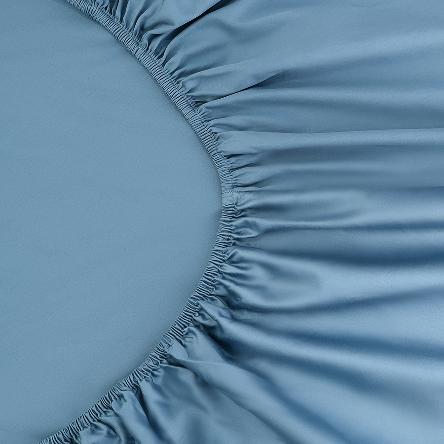 "Простыня на резинке из премиального сатина джинсово-синего цвета из коллекции Essential подчеркнет ваш изысканный вкус и любовь к натуральным материалам. Такое постельное белье сделает любую спальню более стильной, современной, обеспечит уют и комфорт во время отдыха и сна в любое время года.