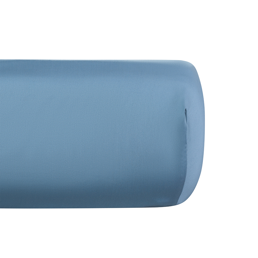 "Простыня на резинке из премиального сатина джинсово-синего цвета из коллекции Essential подчеркнет ваш изысканный вкус и любовь к натуральным материалам. Такое постельное белье сделает любую спальню более стильной, современной, обеспечит уют и комфорт во время отдыха и сна в любое время года.
