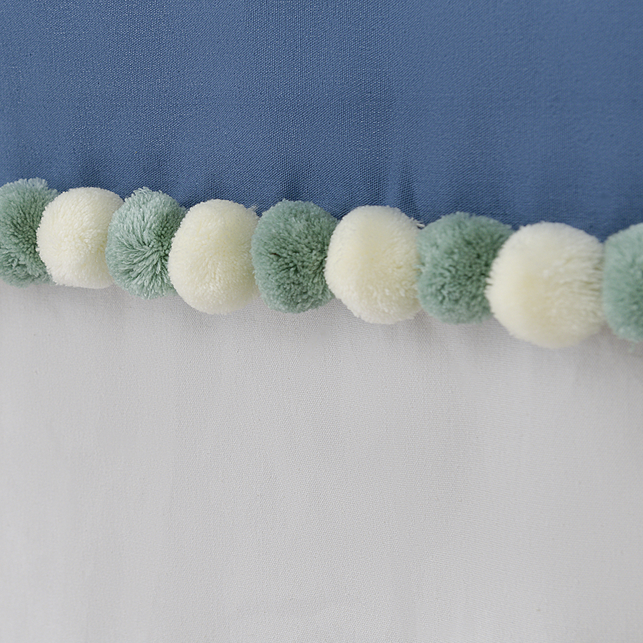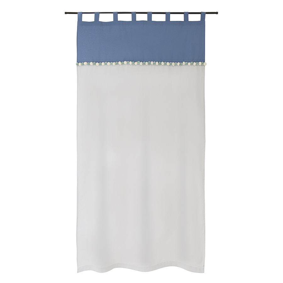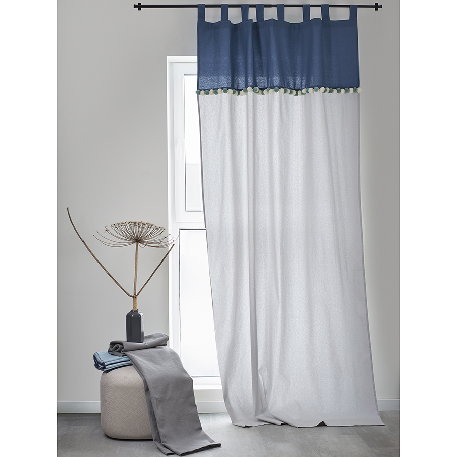 "Штора из хлопка с помпонами серо-синего цвета из коллекции Essential поможет выразить собственный стиль в декоре, освежить интерьер и создать в помещении легкую, непринужденную атмосферу.